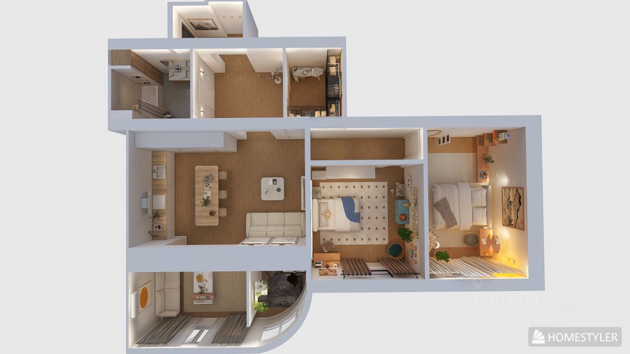 Общая площадь: 120 м2 с продуманной функциональной планировкой: большая кухня-гостиная, кабинет, две просторные спальни, вместительная гардеробная. ,