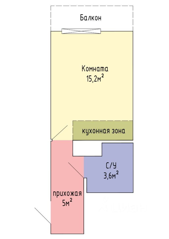 Площадь студии - 23,8 кв.м. без учёта балкона.