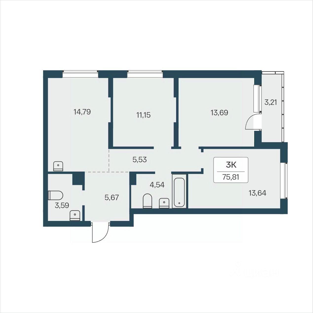 ''В продаже 3-комнатная квартира, площадью 75.81, под номером 109 в новом Доме ЖК ''Расцветай на Зорге''.'' Жилой квартал ''Расцветай на Зорге'' расположен в экологически чистом месте Кировского района,