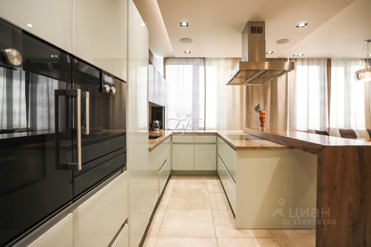 В кухонной зоне установлена встроенная техника премиум-класса Gaggenau (духовой шкаф, варочная поверхность, микроволновая печь, холодильник, морозильная камера, посудомоечная машина, вытяжка). Отдельного внимания заслуживает большой винный холодильник, который поддерживает идеальный температурный режим для коллекционных напитков!