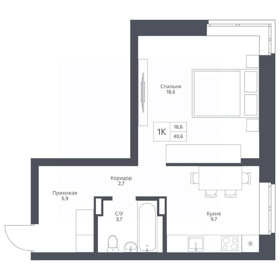 Общая площадь40,6 м2