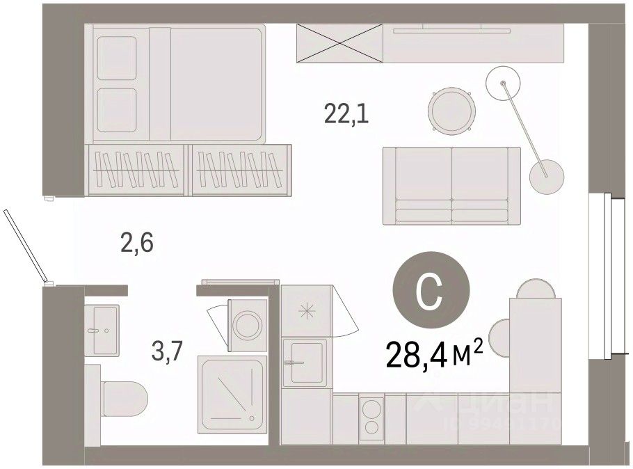Студия в проекте Город-на-озере. Особенности планировки: новые лоты, предчистовая отделка. квартиры в нашей базе: ГРД01-Ж5.9.1.