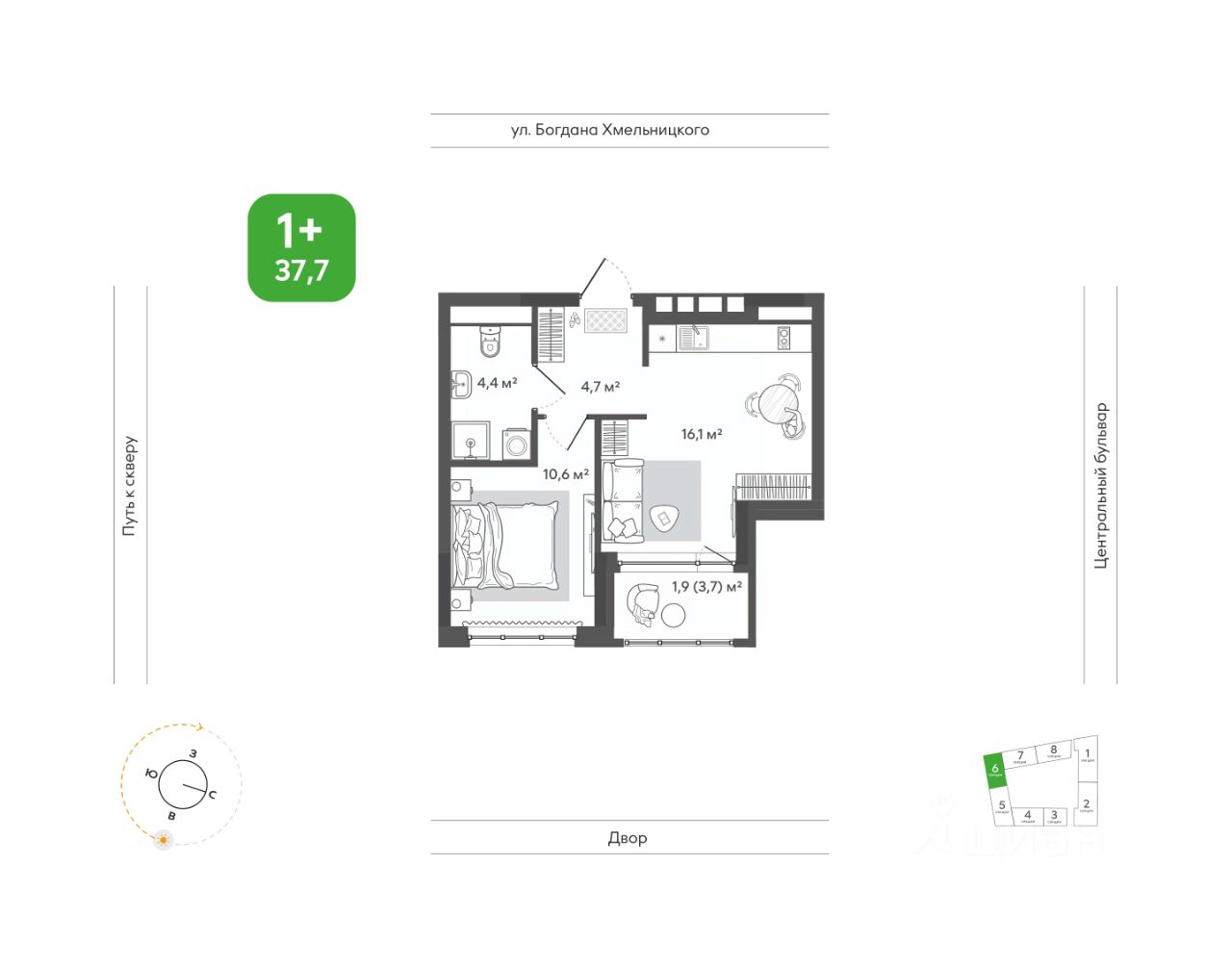 Просторная кухня-гостиная с выходом на лоджию позволит удобно готовить, принимать гостей или отдыхать после долгого дня