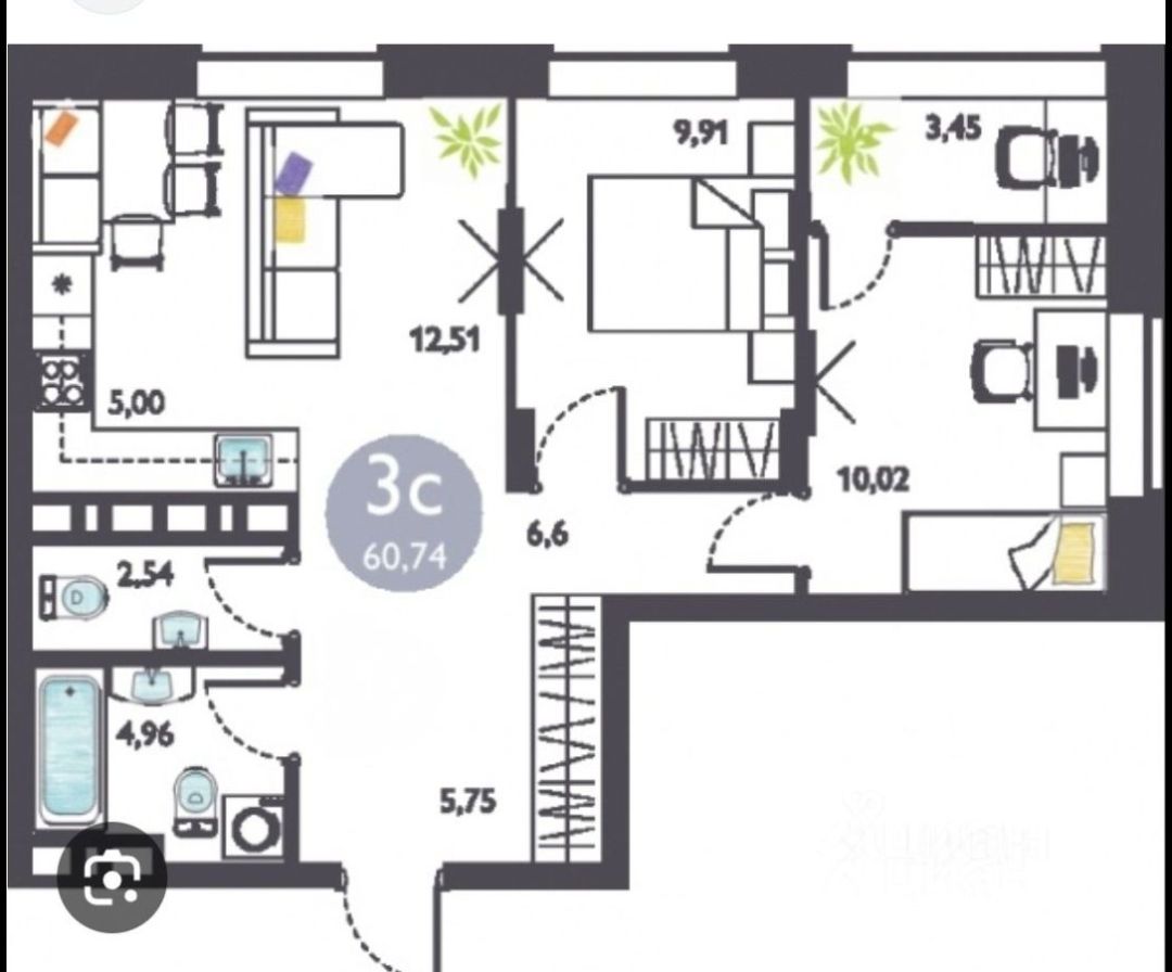 Сдается в аренду светлая и просторная трехкомнатная квартира в современном жилом комплексе, расположенном по адресу: Россия, Новосибирск, улица Ясный Берег, 23. Общая площадь квартиры составляет 57 кв. м, из которых 24 кв. м — жилая площадь, а кухня занимает 16 кв. м. Квартира находится на 22 этаже 27-этажного монолитного дома, построенного в 2021 году. Высота потолков — 2.75 метра. Из окон открывается вид как на правый берег города и реку Обь.