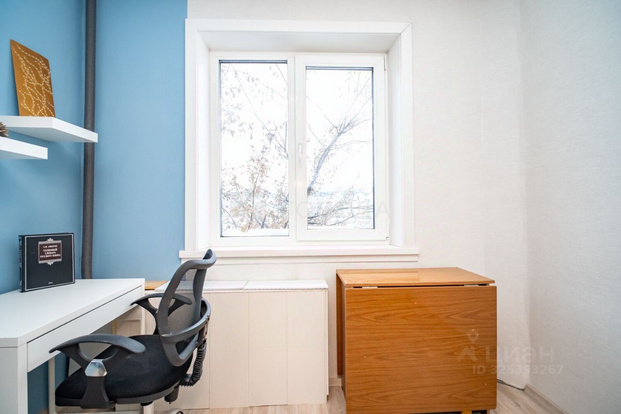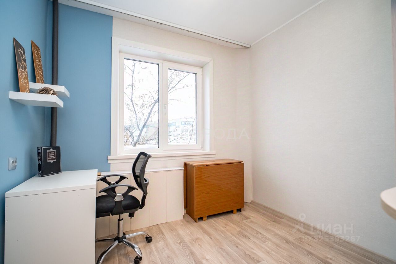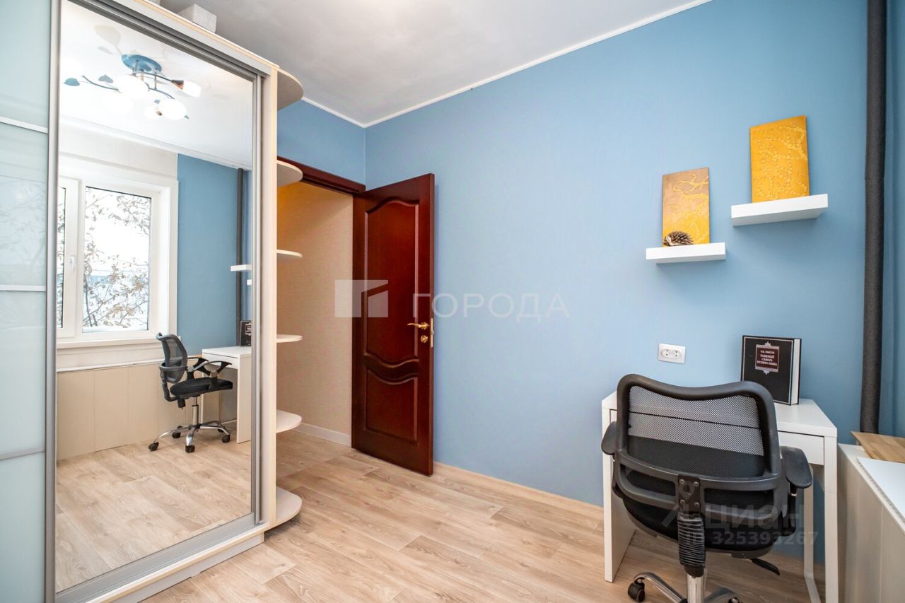 Квартира расположена на 4 этаже 10-этажного панельного дома 1988 года постройки. Общая площадь — 59,4 кв. м, жилая — 48,4 кв. м, площадь кухни — 8 кв. м. Комнаты изолированы, окна выходят на улицу и во двор. В доме есть наземная парковка.