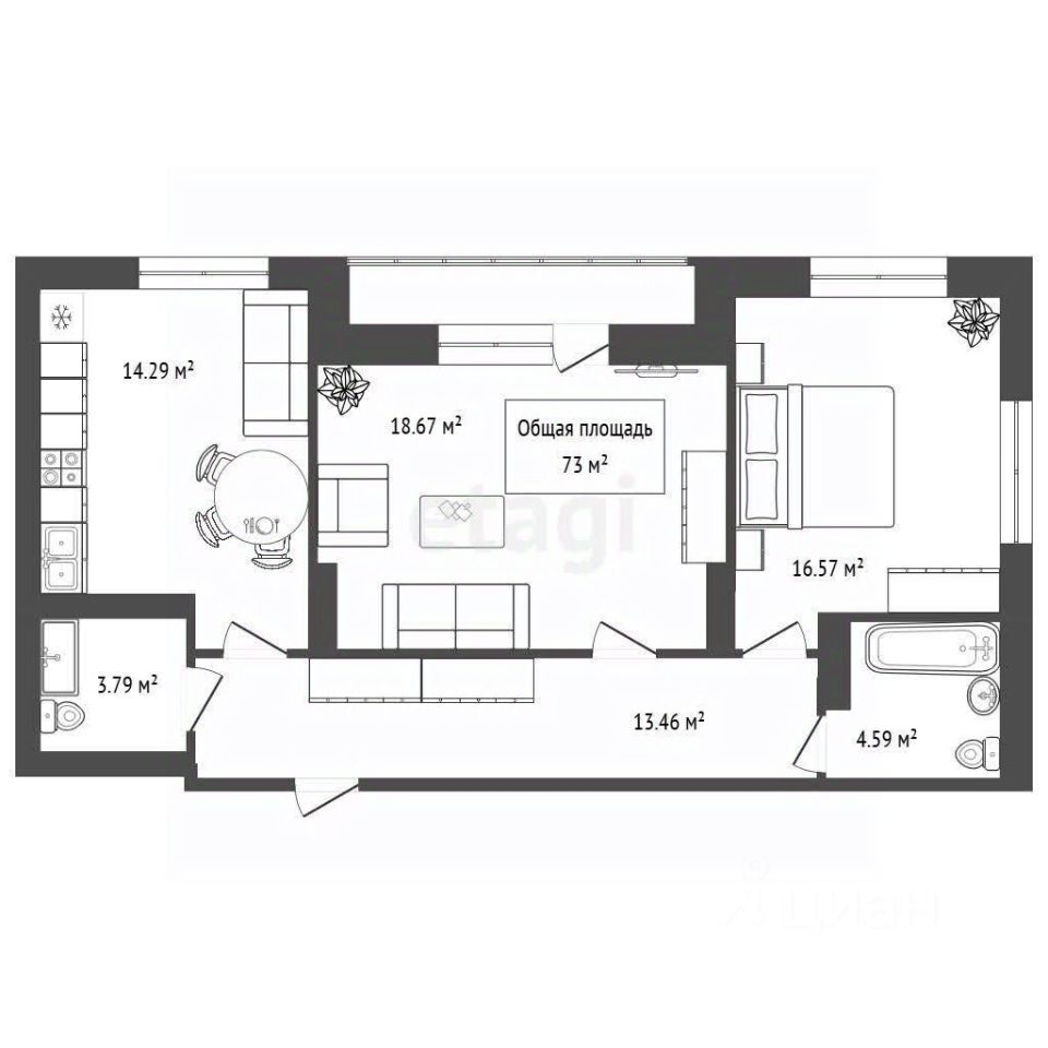 Угловая квартира с большим количеством естественного света и открытым видом Просторная кухня: 14,29 м² Две возможные мокрые зоны — создайте второй санузел или организуйте удобное пространство под нужды своей семьи Квартира в бетоне под вашу отделку мечты 5 этаж из 24 в монолитно-кирпичном доме комфорт-класса