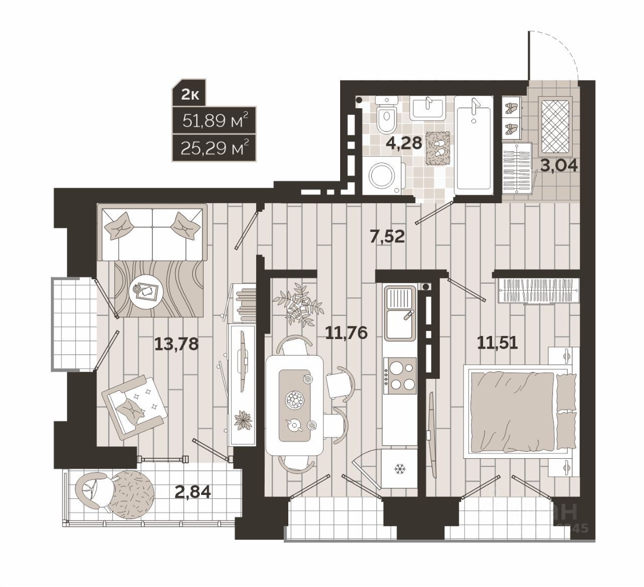 Продаётся 2-комнатная квартира в строящемся доме (Дом 2), срок сдачи: II-кв. 2028, общей площадью 51.89 кв.м., на 9 этаже. ''Авторский квартал'' - это история, где главные герои - вы и ваша семья.