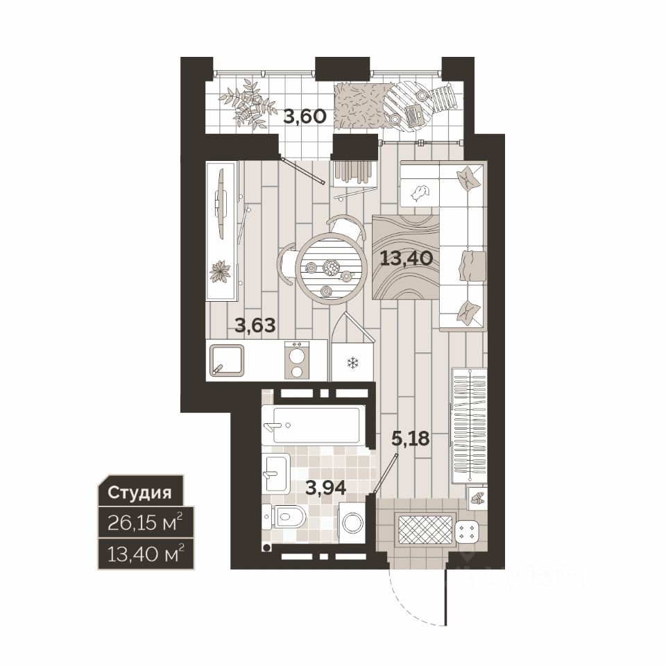 Продаётся 1-комнатная квартира в строящемся доме (Дом 2), срок сдачи: II-кв. 2028, общей площадью 26.15 кв.м., на 7 этаже. ''Авторский квартал'' - это история, где главные герои - вы и ваша семья.