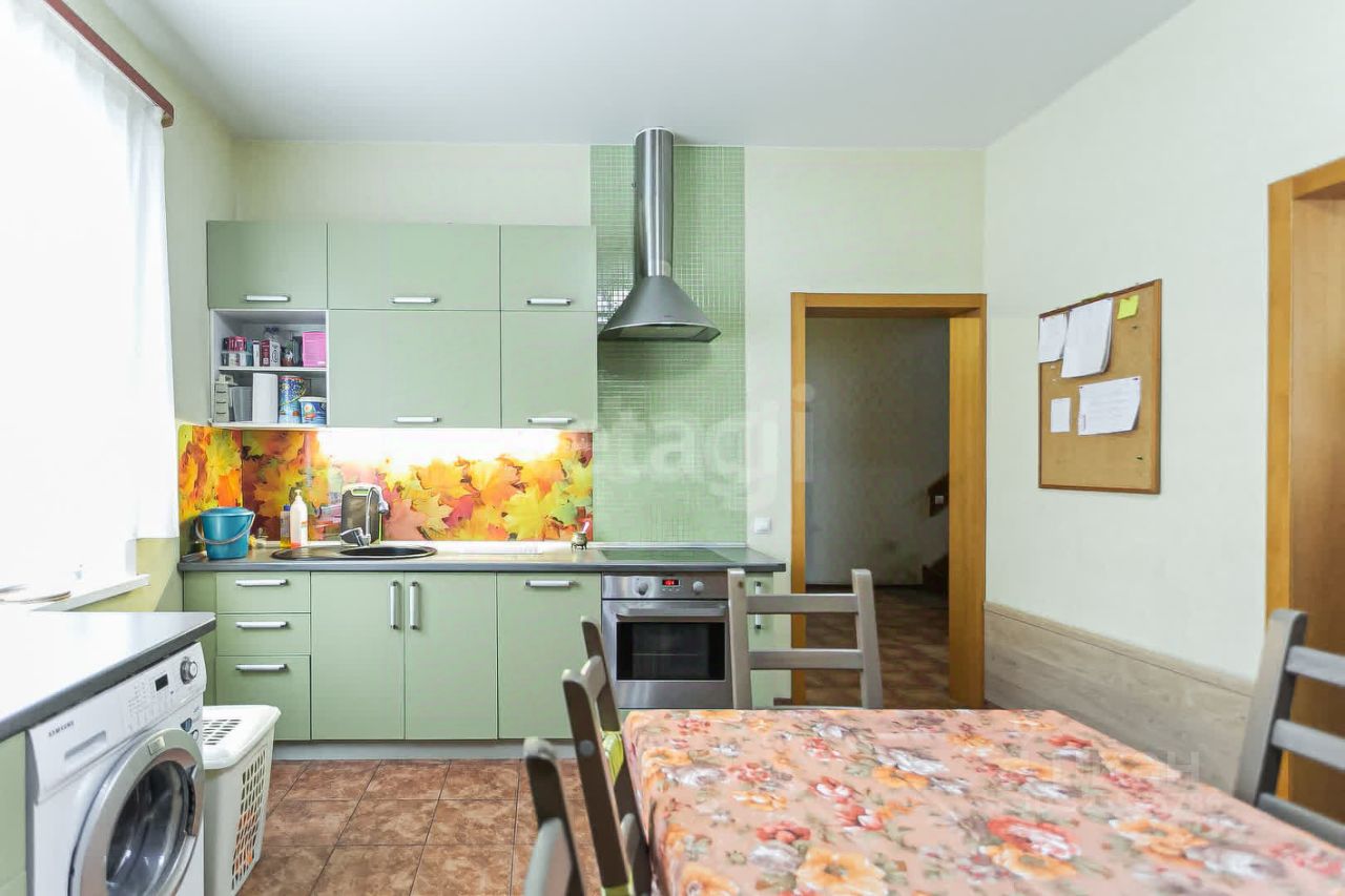 Дом находится в отличном состоянии благодаря качественному ремонту. На первом этаже оборудованы теплые полы, гостиная и гостевой санузел. Второй этаж включает три спальни и второй санузел, обеспечивая комфортное проживание для семьи. К дому пристроен гараж с удобным выходом из помещения, что особенно ценно в холодное время года.