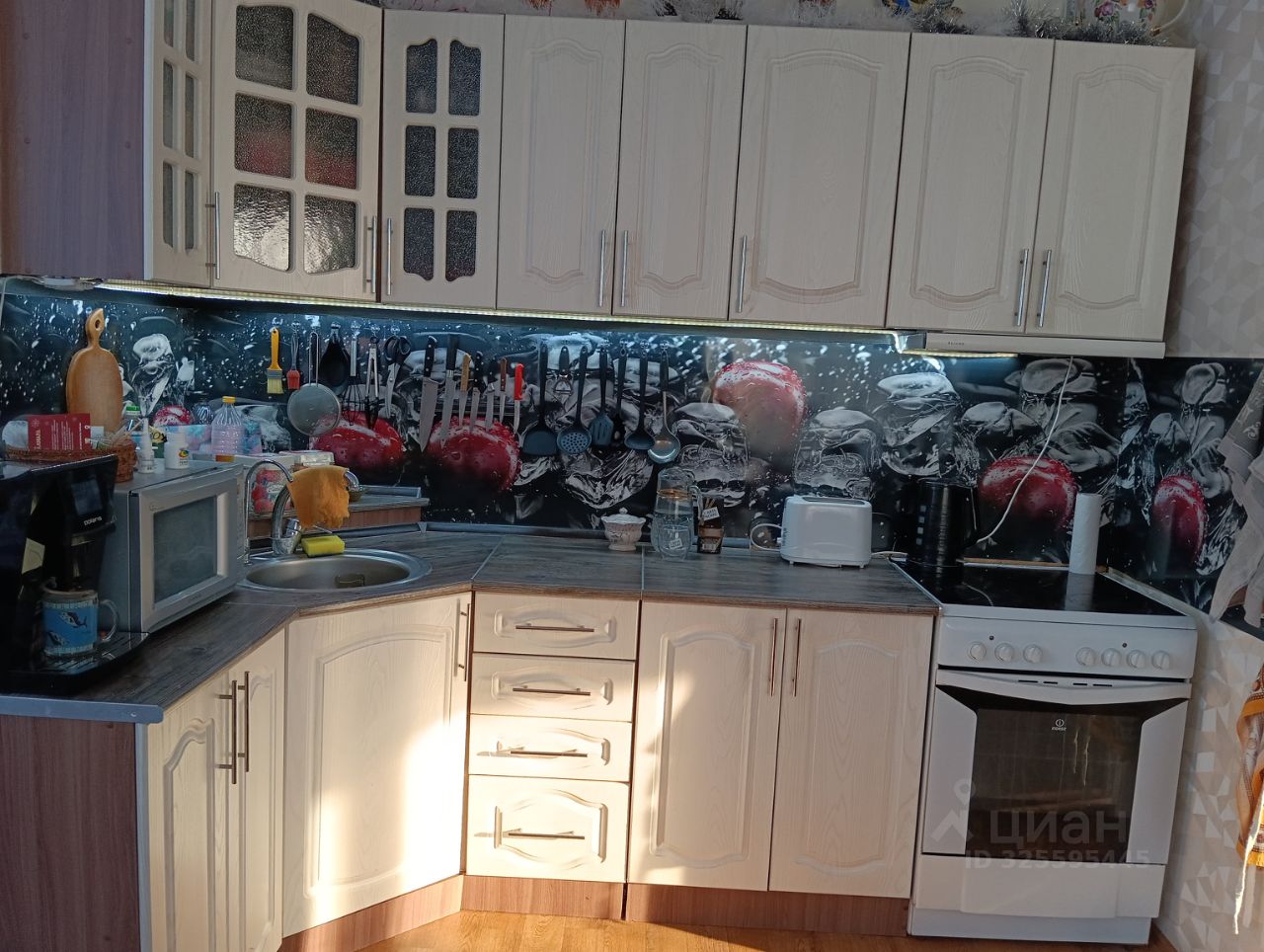 На участке стоят две теплицы,посажено много вкусной Виктории,малина,жимолость, несколько деревьев груши,яблоня, вишня.