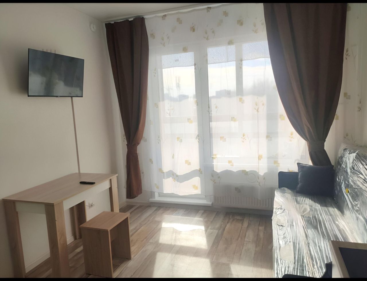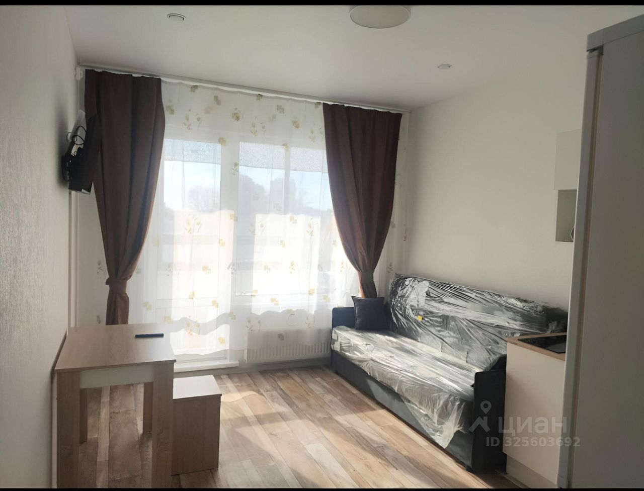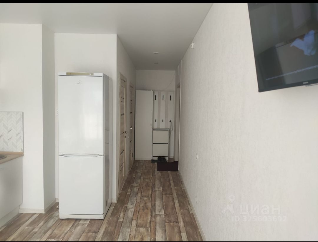 В квартире выполнен качественный евроремонт. Просторная студия грамотно зонирована, что позволяет максимально эффективно использовать пространство. В комнате и на кухне есть вся необходимая мебель. В кухонной зоне установлен холодильник, в комнате — телевизор. В ванной комнате — душевая кабина и стиральная машина. Окна выходят на улицу, а также имеется балкон, где можно наслаждаться свежим воздухом.