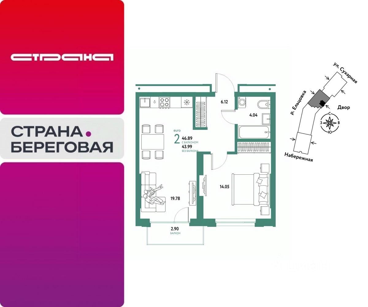 Продается 2комнатная квартира на 3 этаже от застройщика Страна Девелопмент. Площадь квартиры 46,89 кв. м.