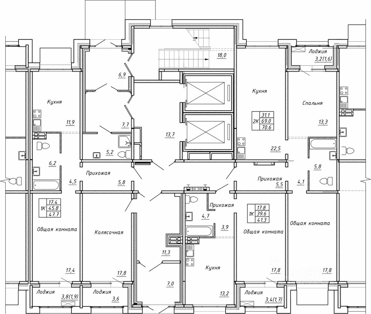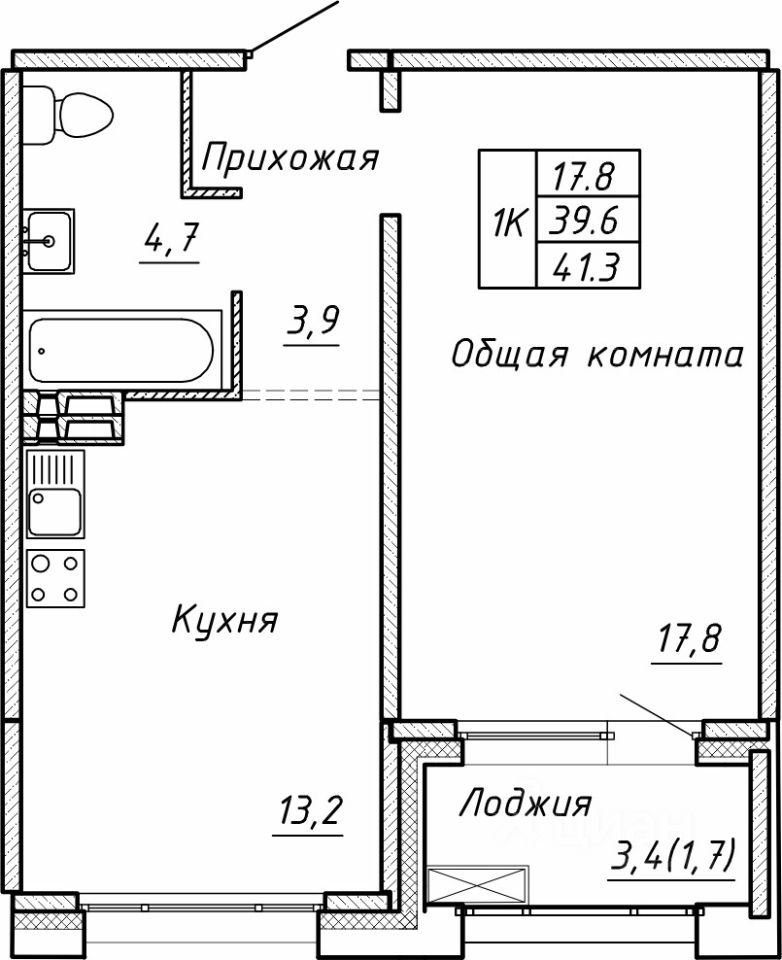 Общая площадь41,3 м2