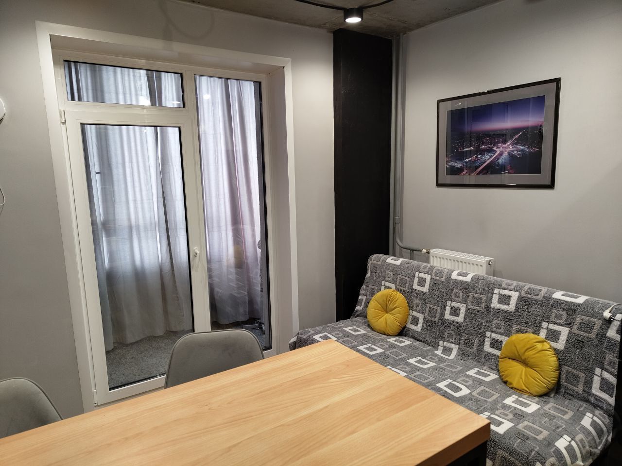Квартира расположена в современном жилом комплексе с панорамными окнами, выходящими на зелёный парк. Просторный светлый интерьер выполнен в нейтральных тонах с яркими акцентами. В квартире есть просторная гостиная-кухня, отдельная спальня, детская комната и светлая ванная. Высокие потолки и большие окна создают ощущение воздушности и свободы. Качественный ремонт и удобная планировка делают эту квартиру идеальным местом для комфортной жизни.