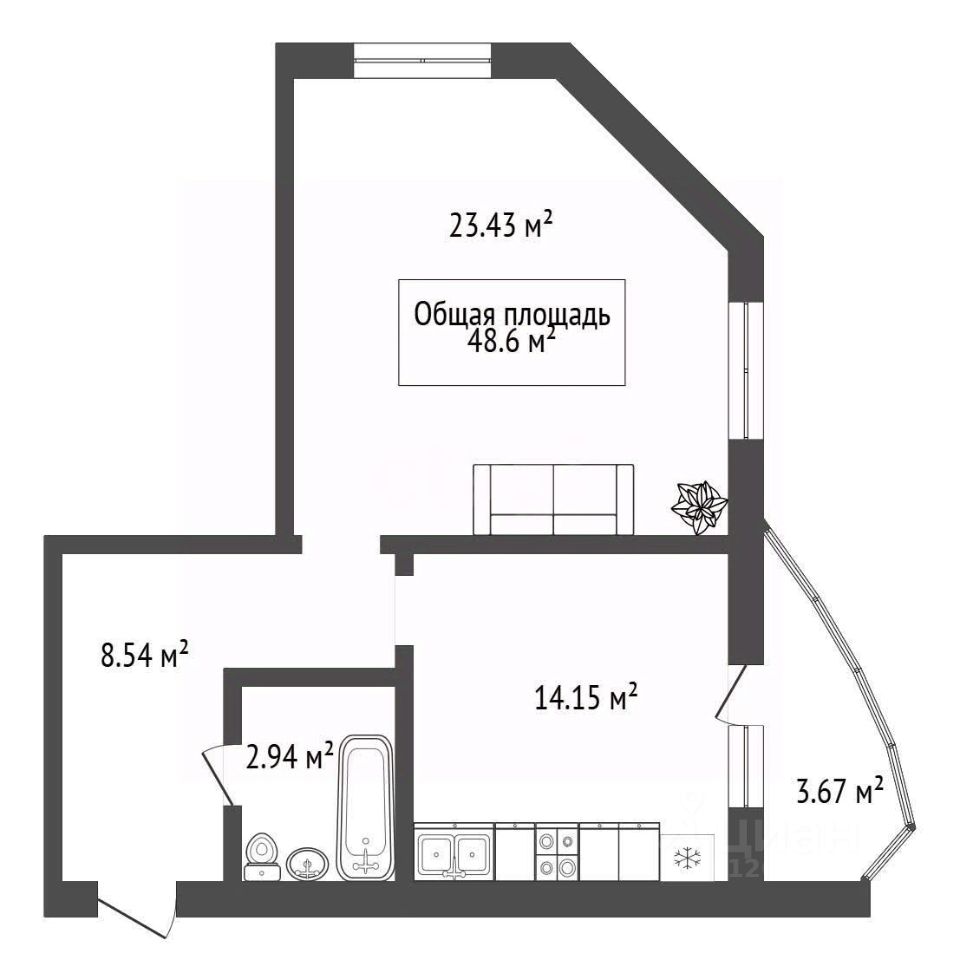 В квартиpе coвмещeнный cанузел. Простоpный балкон.