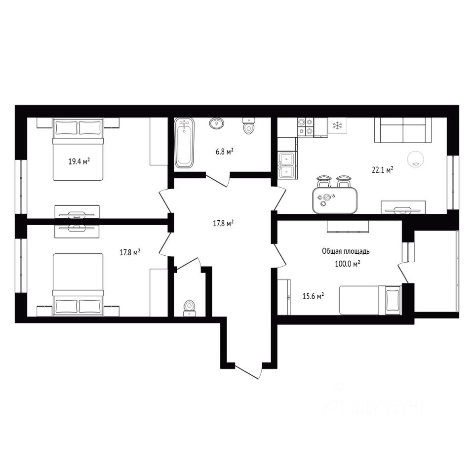 Планировка и ремонт: Квартира с дизайнерским ремонтом, который создаёт атмосферу уюта и комфорта. Просторные комнаты с площадью 22,1 кв. м, 19,4 кв. м и 17,8 кв. м предлагают множество возможностей для зонирования и оформления по вкусу нового владельца.