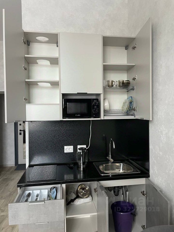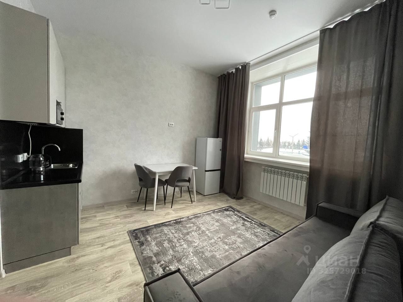 Вся необходимая мебель присутствует - холодильник, кухня со встроенной варочной панелью, чайником, микроволновкой, вытяжкой, посудой, два стула и раздвижной стол, стиральная машина, душевая, большой раскладывающийся диван, шкаф для хранения вещей. В с/у находится водонагреватель. Сдается впервые, после ремонта еще никто не жил, была проведена полная уборка. Наземная огороженная парковка (шлагбаум, въезд по звонку с мобильного)