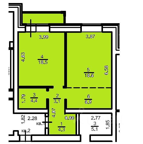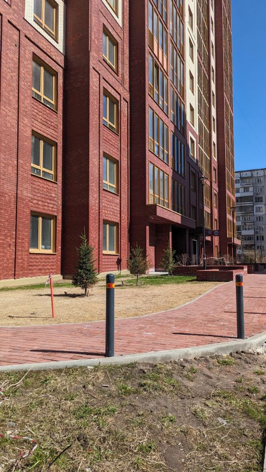 Окна выходят во двор на детскую площадку.