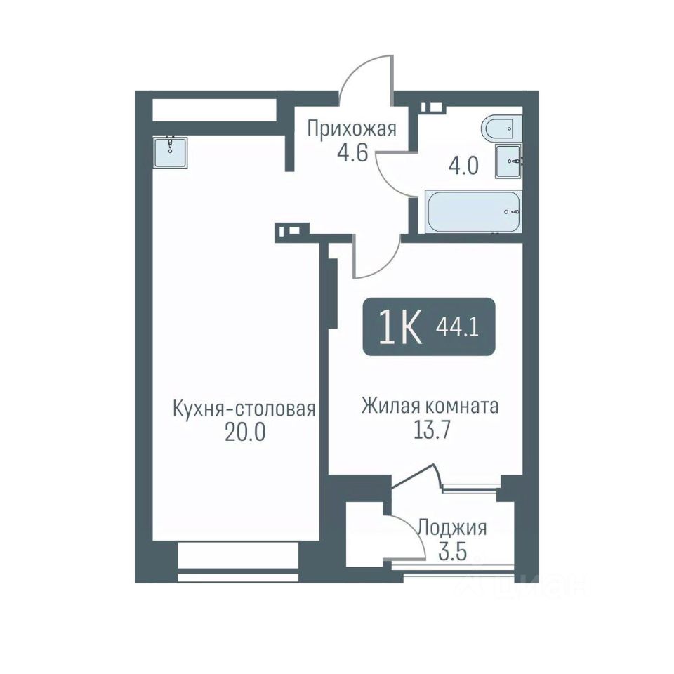 Общая площадь44,1 м2