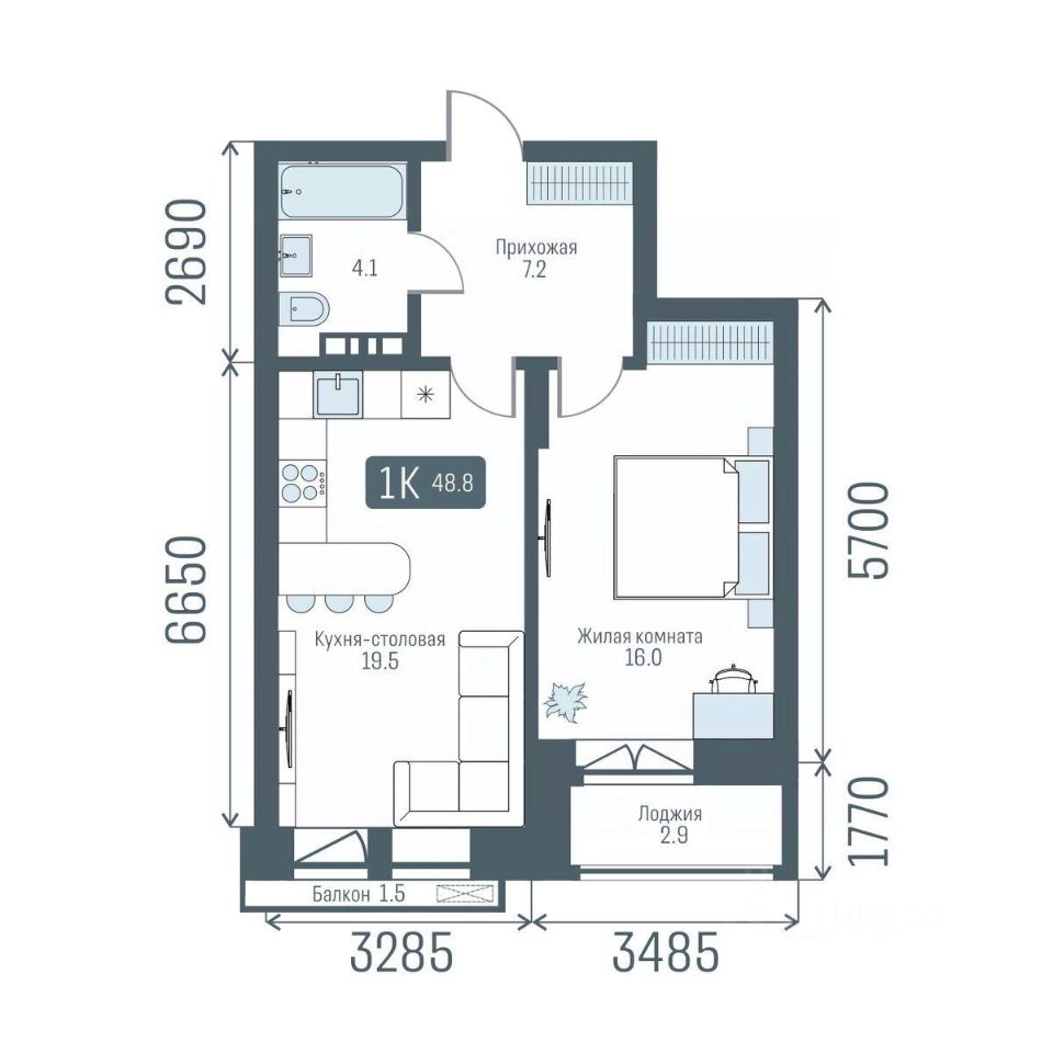 Общая площадь48,8 м2