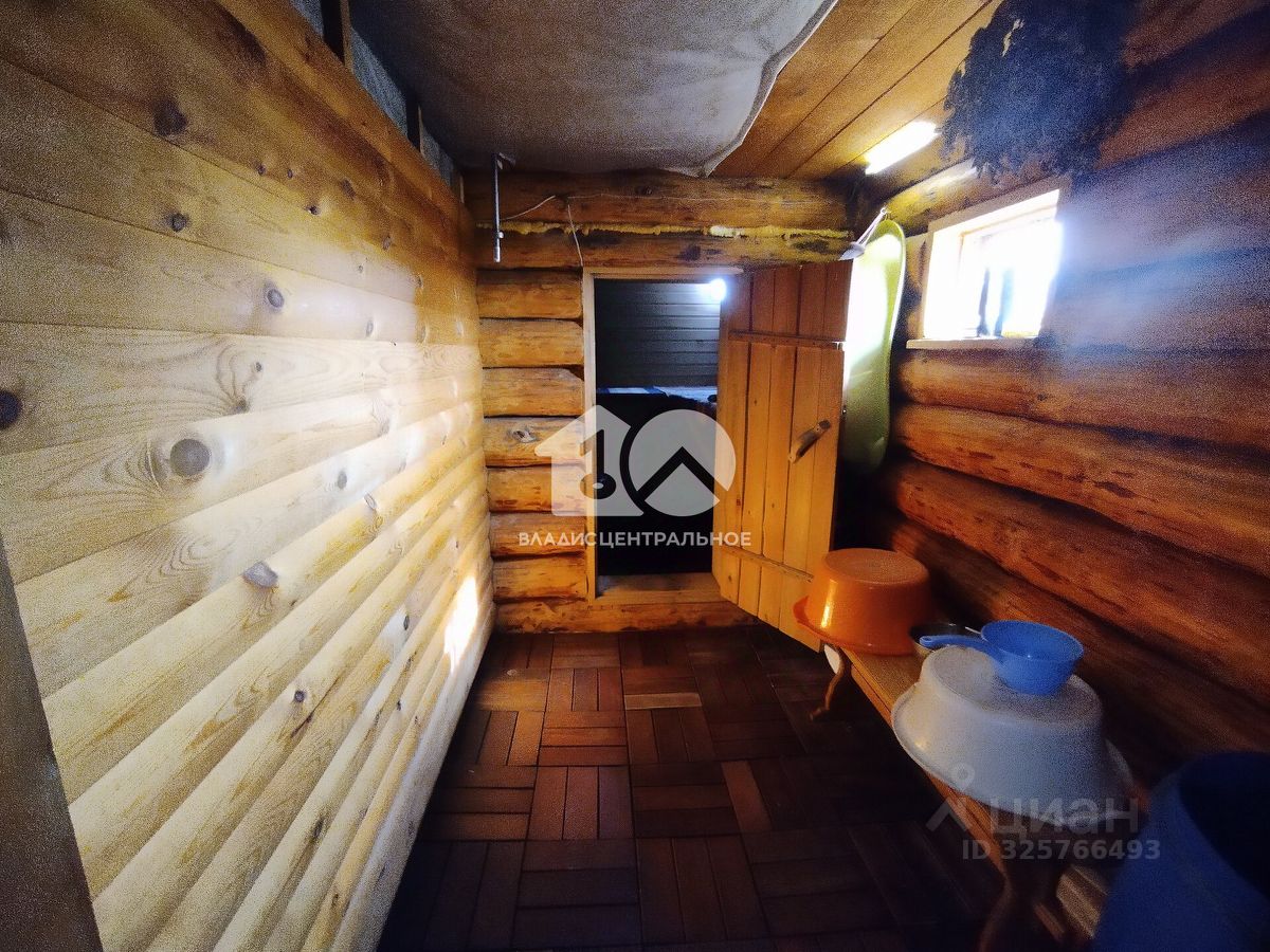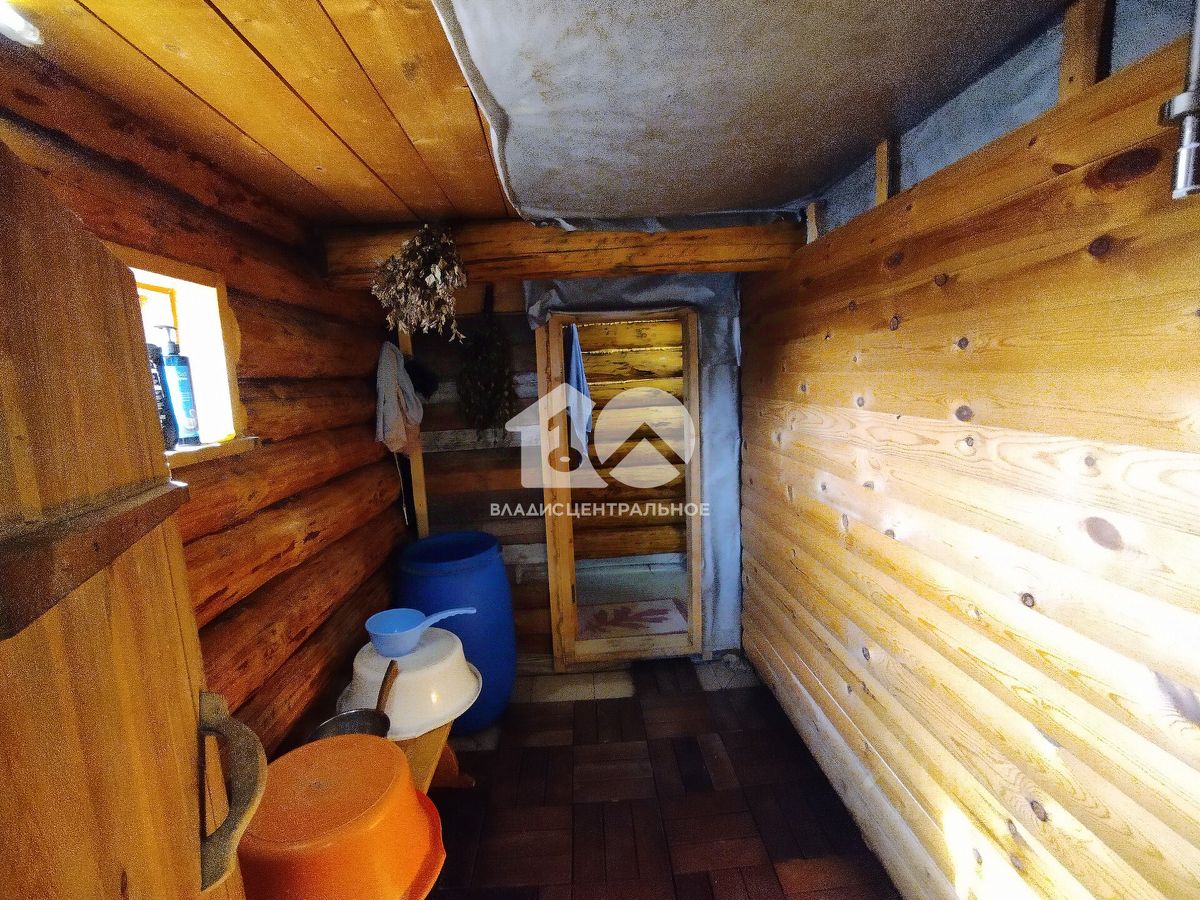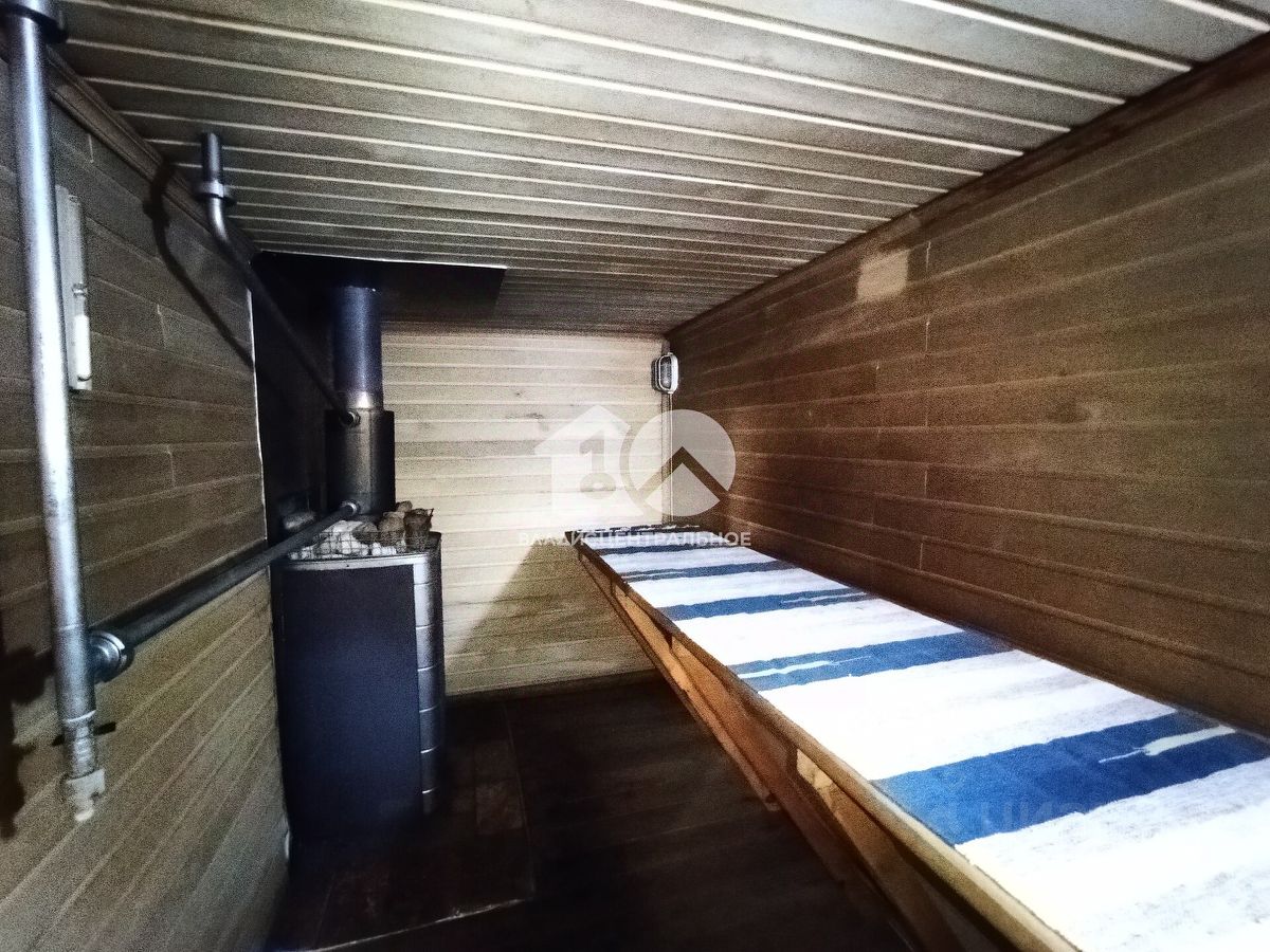 На участке площадью 9,4 соток есть баня и охрана, подъезд к участку засыпан щебёнкой. На территории общества 2 магазина. На участке 3-х этажный дом из бруса, отделанный сайдингом. Дом отапливается газом, имеется туалет, горячее и холодное водоснабжение со скважины, также техническое помещение. Общая площадь дома 130 кв.м. Баня из бруса 6*5. Возможность прописки по адресу регистрации.