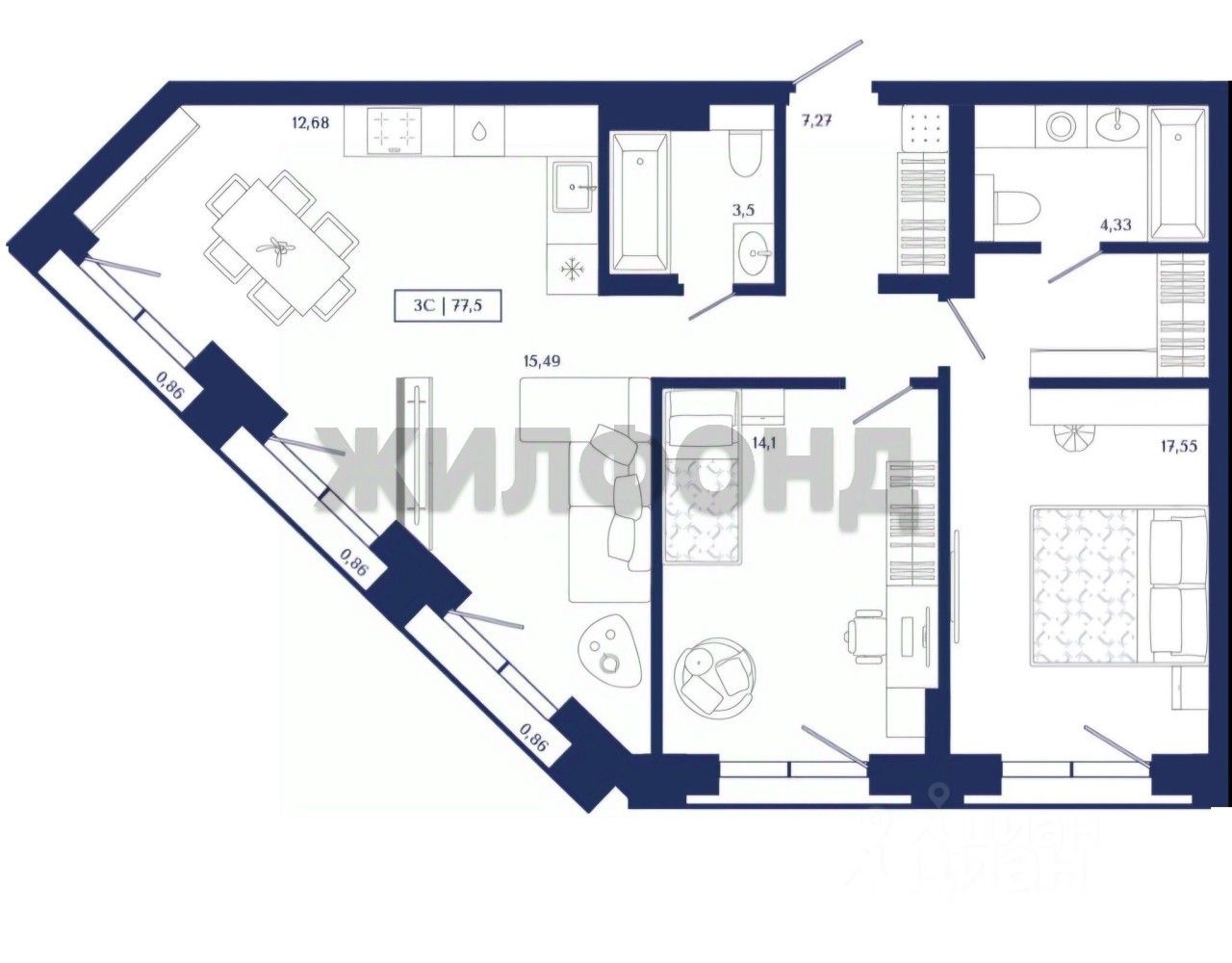 В квартире 2 спальни и большая кухня-гостинная с видовыми окнами. Квартира приобретена за наличный расчет, продается по переуступке.