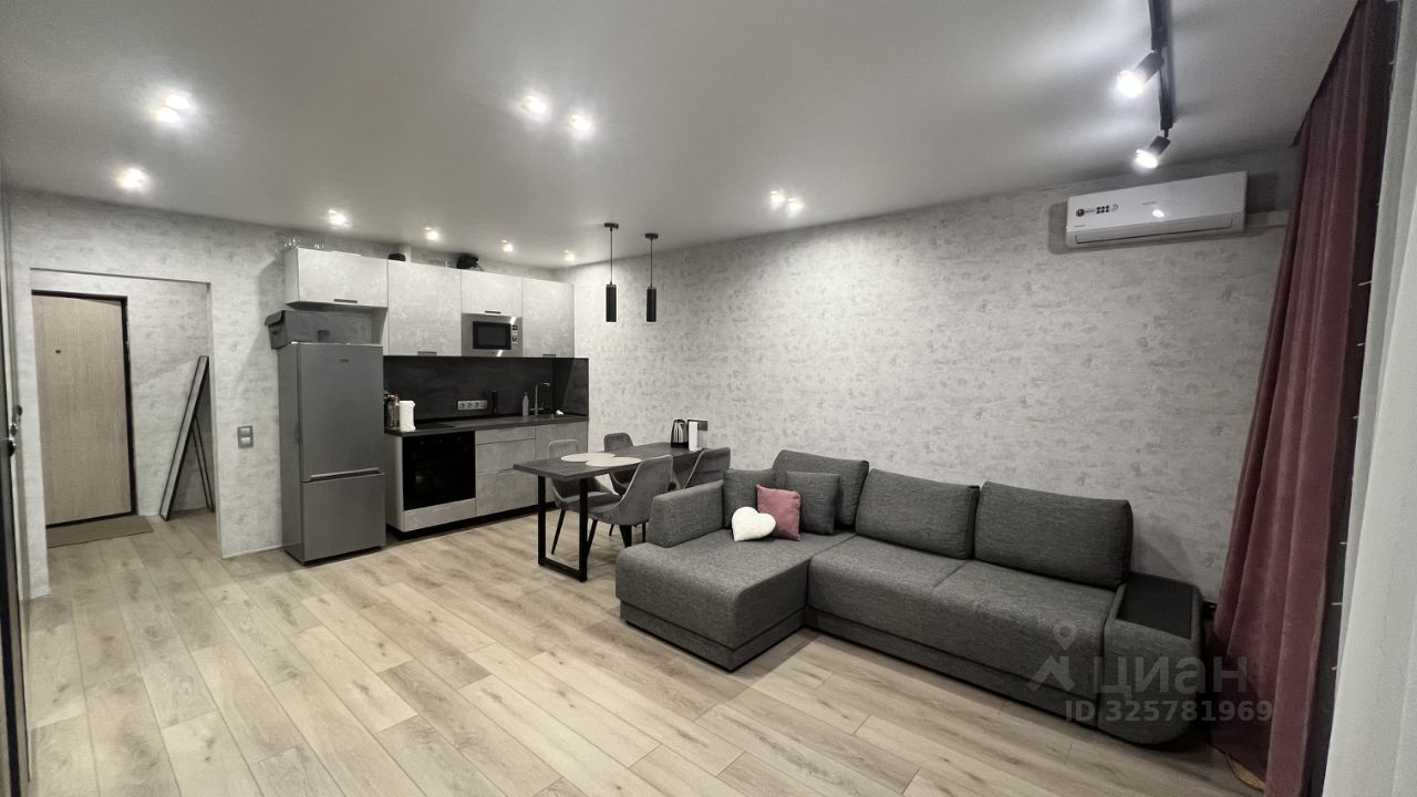 В квартире сделан качественный ремонт.Есть вся необходимая мебель, установлена современная техника: кондиционер, холодильник, телевизор и стиральная машина. Санузел совмещённый, оборудован ванной. Также есть балкон, где можно насладиться свежим воздухом.