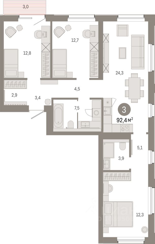 Продаётся 3-комнатная квартира в строящемся доме (Дом 1), срок сдачи: IV-кв. 2028, общей площадью 92.4 кв.м., на 5 этаже. Новый жилой комплекс ''Город-на-озере'' от застройщика ''Брусника'' расположен в Дзержинском районе Новосибирска в границах ул. Ипподромской, ул. Фрунзе, Журинского спуска.
