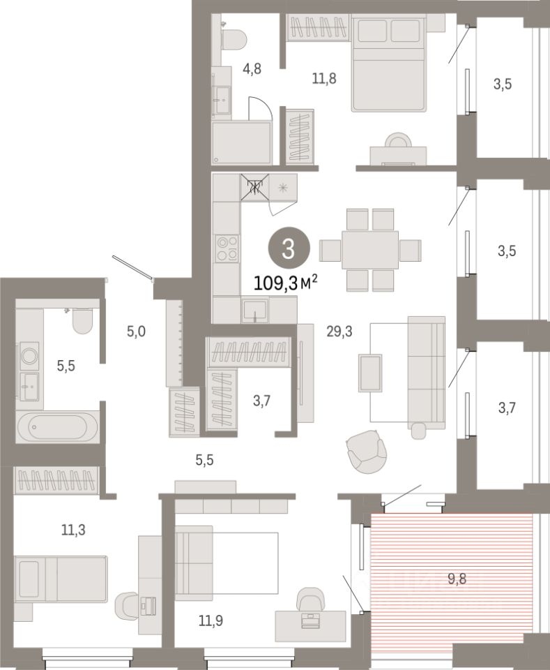 Продаётся 3-комнатная квартира в строящемся доме (Дом 1), срок сдачи: IV-кв. 2028, общей площадью 109.3 кв.м., на 14 этаже. Новый жилой комплекс ''Город-на-озере'' от застройщика ''Брусника'' расположен в Дзержинском районе Новосибирска в границах ул. Ипподромской, ул. Фрунзе, Журинского спуска.