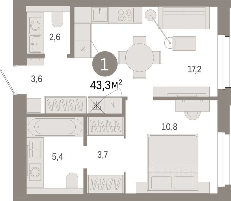 Продаётся 1-комнатная квартира в строящемся доме (Дом 1), срок сдачи: IV-кв. 2028, общей площадью 43.3 кв.м., на 7 этаже. Новый жилой комплекс ''Город-на-озере'' от застройщика ''Брусника'' расположен в Дзержинском районе Новосибирска в границах ул. Ипподромской, ул. Фрунзе, Журинского спуска.
