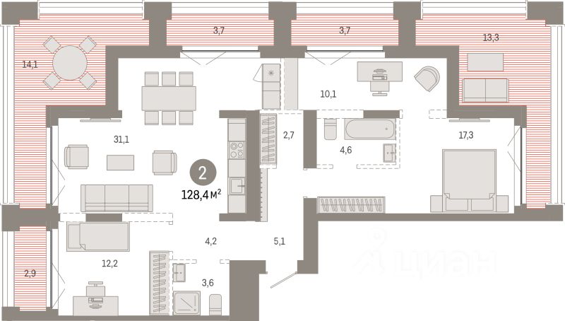 Продаётся 2-комнатная квартира в строящемся доме (Дом 45), срок сдачи: III-кв. 2028, общей площадью 128.4 кв.м., на 13 этаже. Микрорайон ''Европейский берег'' расположен на правом берегу Оки, между Бугринским и Октябрьским мостами, в пятнадцати минутах езды от центра Новосибирска. Прямой доступ на Большевистскую улицу (магистраль Р-256 ''Чуйский тракт'') обеспечивает удобный и быстрый путь в любой район города. По трассе можно совершить путешествие через Алтай до границы с Монголией.