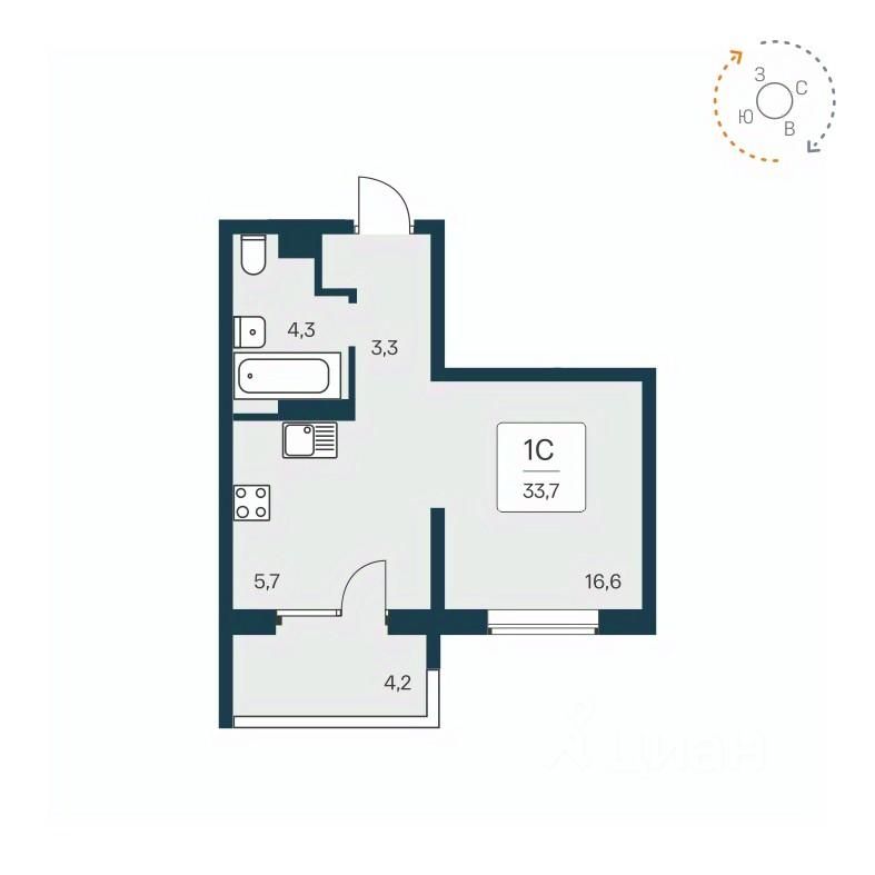 Общая площадь33,7 м2