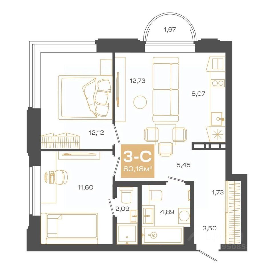 Продаётся 3-комнатная квартира в строящемся доме (Блок-секция 1), срок сдачи: II-кв. 2026, общей площадью 60.18 кв.м., на 17 этаже. Пульсар - это современный дом с развитой инфраструктурой по ул.Мусы Джалиля. Детские сады, школы, поликлиники и парки для прогулок в 5 минутной доступности.