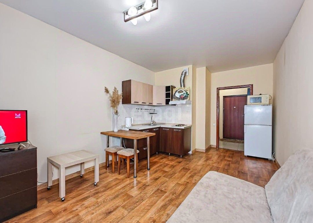 В квартире выполнен качественный евроремонт. Пространство студии удобно зонировано, есть вся необходимая мебель как на кухне, так и в комнате. Для вашего комфорта установлены холодильник, телевизор и стиральная машина. Ванная комната оборудована полноценной ванной. Окна выходят на улицу, а на лоджии можно наслаждаться свежим воздухом.
