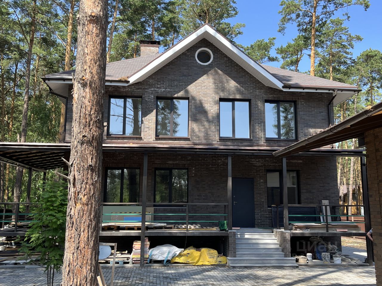 В Кудряшовском сосновом бору на участке 15 соток продаётся кирпичный 3-этажный дом (цоколь + 2 этажа), зарегистрирован в егрн в 2021 году, площадь 424,2 м/кв(в том числе открытая терраса), чистовая отделка завершена в 2024 . Внутренняя площадь каждого этажа 117 м/кв. Стены: черновой пустотелый кирпич ''Стройкерамика'' М-125 количество 270 м/куб + облицовочный Ликолор Дартс - 50 м/куб ) толщина стен 75 см. Фундамент (ЖБИ лента+армированная ЖБИ плита, блоки ФБС-24.6.6., + армапояс). Перекрытия все 3 этажа - жби плиты ПК15.8. Высота потолков 3 м. Выложена отмостка и дорожки тротуарной плиткой площадью около 500 м/кв, 12 сосен на участке, позади сосновый бор. Гараж на 2 машины: стены кирпич пустотелый + облицовочный, перекрытия плиты ПК15.8.
