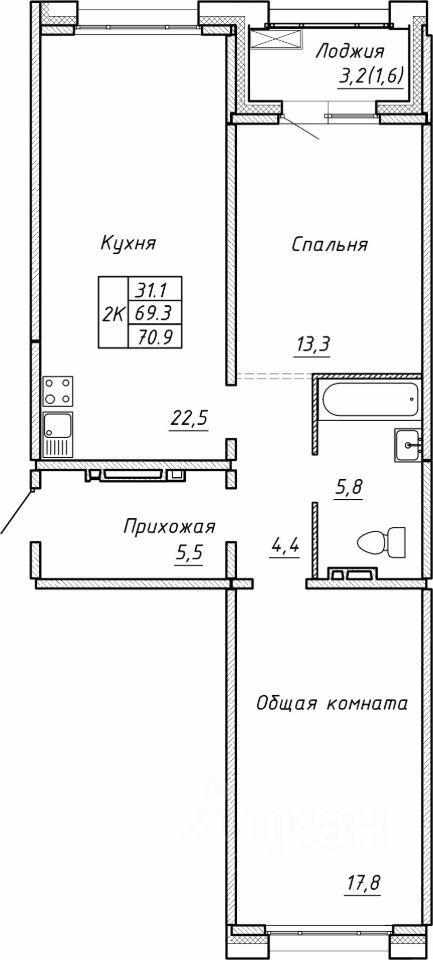 Продаётся 2-комнатная квартира в строящемся доме (Дом 5), срок сдачи: III-кв. 2026, общей площадью 70.9 кв.м., на 2 этаже. Новый жилой комплекс ''Гренландия'' от Группы компаний ''Союз'' расположен в Калининском районе Новосибирска на ул. Тюленина.