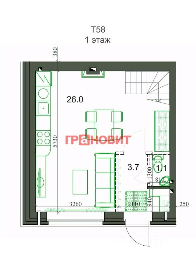 Общая площадь58 м2