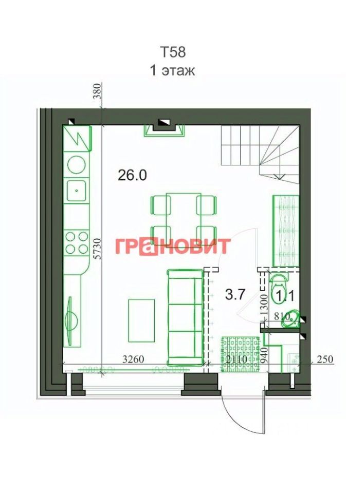 Общая площадь60 м2