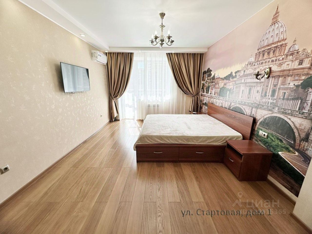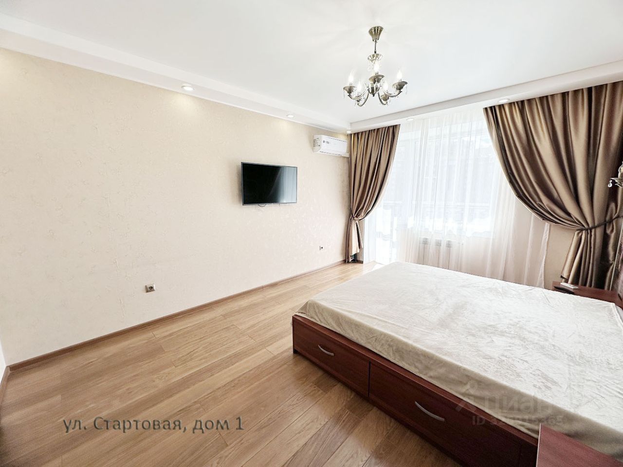 Квартира большая 46 метров и балкон еще 10 метров, удобная планировка просторная кухня поместится диван, шкаф только один в прихожей, кровать на 180см.