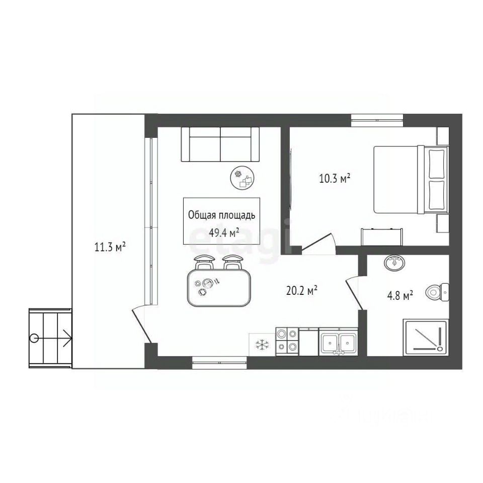 Общая площадь49,4 м2