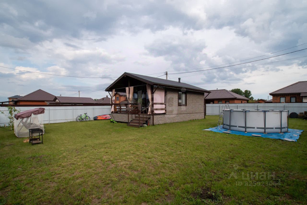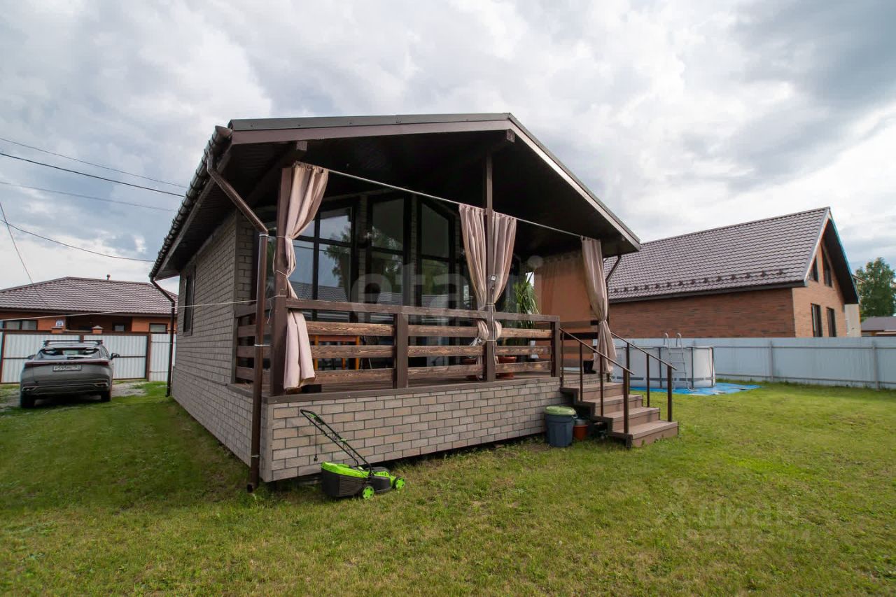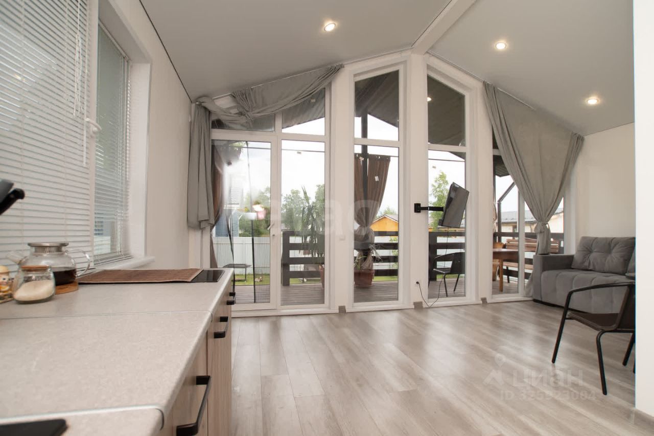 Дом 49,4 кв.м. (из них веранда 11,3 кв. м.) на участке 5 соток в ЖК ''Олимп''. Панорамные окна ''второй свет'', полный ремонт, заведены все коммуникации- ''Заходи и живи''. (Городская вода, септик, бойлер, отопление- электрические теплые полы). На полу в комнатах ламинат, в ванной керамогранит, на стенах SPC-плитка. По всему периметру участка установлен забор из профлиста. Хорошая транспортная доступность, лес на границе участка.