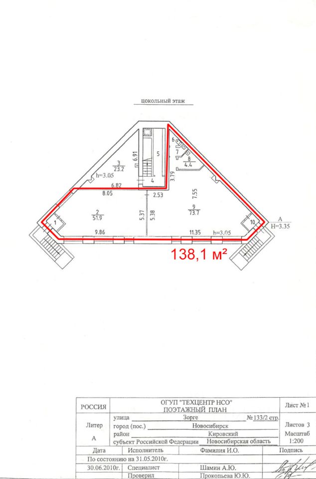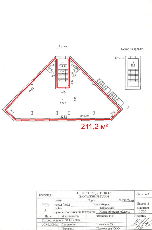 Высота потолка первого и второго этажей - 3,6 м, высота цоколя 3 м Центральный вход в здание с улицы Зорге, по лестнице, уровень пола 1 этажа выше уровня земли на 1 м. Так же есть боковой и пожарный выходы, с противоположной стороны здания Электрические мощности на всё здание 28 кВт, с возможностью увеличения Центральное водоснабжение и канализация