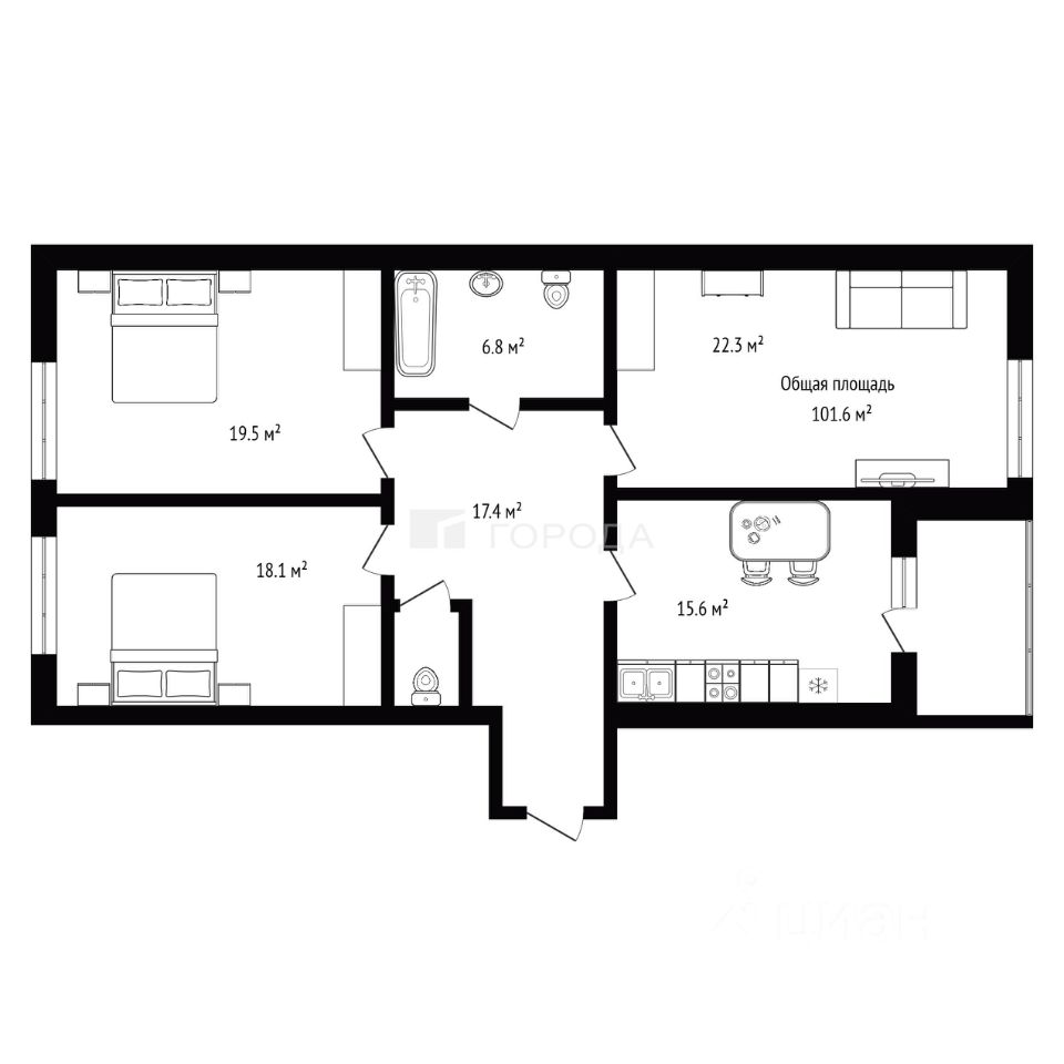Этаж: 18 из 24 — открываются красивые виды, в квартире много света и воздуха. Общая площадь: 101,6 м² Жилая площадь: 59,9 м² Кухня-гостиная: 16 м² — удобная и функциональная, идеально подходит для семейных ужинов.