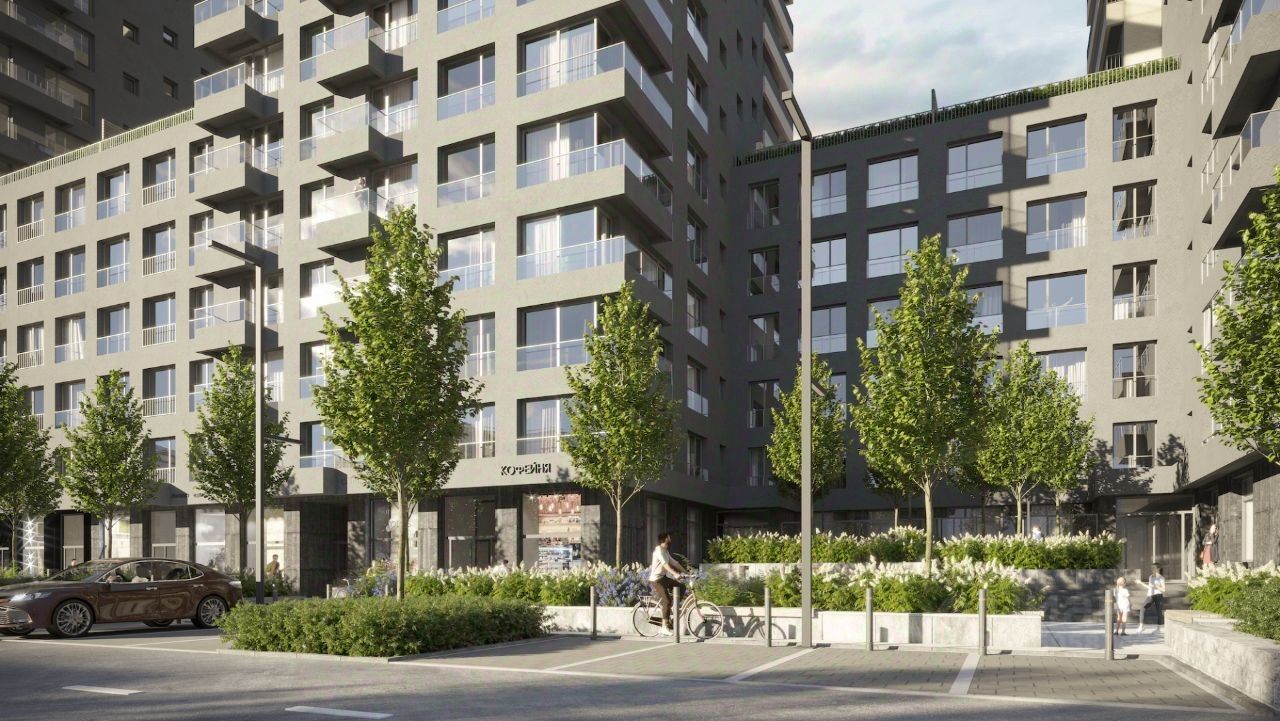 Первые этажи вдоль Мочищенского шоссе и улицы Аэропорт мы отдали под полезные сервисы и магазины. Активный фронт позволил интегрировать квартал в городской контекст. На территории ''Авиатора'' расположен многофункциональный спортивный комплекс с открытым амфитеатром, который станет центром притяжения всего района.