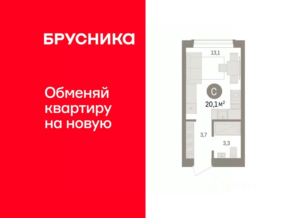 Студия в квартале Авиатор. Особенности планировки: предчистовая отделка. квартиры в нашей базе: АВТ03-Ж4.4.7.