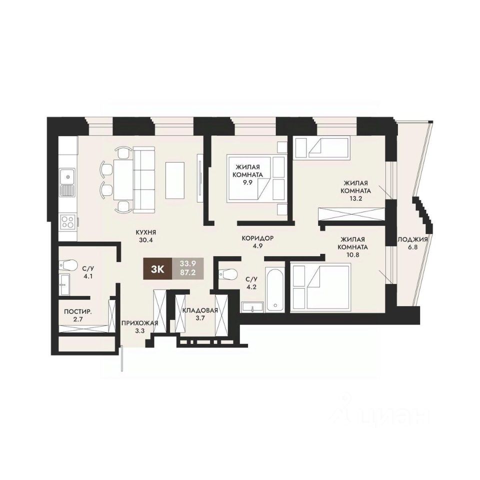 Продаётся 3-комнатная квартира в строящемся доме (Секция 1.1), срок сдачи: II-кв. 2028, общей площадью 87.2 кв.м., на 1 этаже. Новый жилой комплекс ''Паскаль'' от Группы компаний ''Сибмонтажспецстрой'' расположен в Октябрьском районе Новосибирска на ул. 4-я Кирпичная Горка.