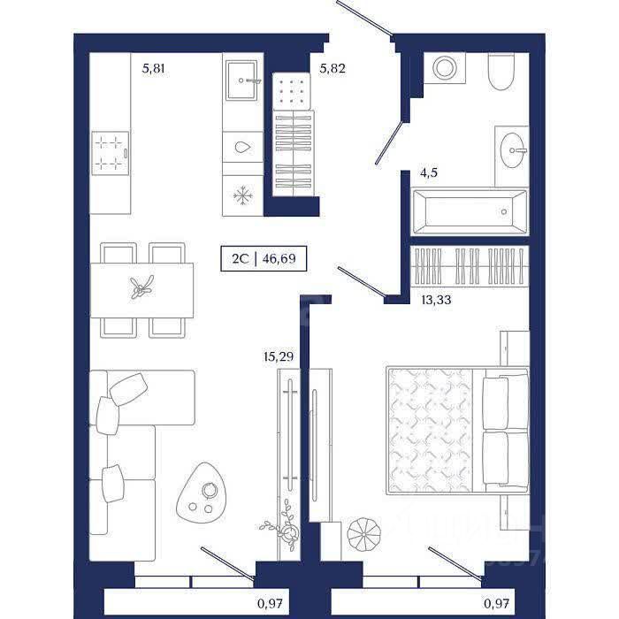 Продается двухкомнатная квартира-студия площадью 45 м² на 7 этаже 15-этажного дома бизнес-класса Unity Center. Объект представляет собой переуступку права требования от физического лица, что обеспечивает чистую сделку без обременений с единственным собственником. - Ключевое финансовое преимущество — цена на 1,2 млн рублей ниже, чем текущая стоимость аналогичных лотов у застройщика. Квартира отличается современной свободной планировкой, которая позволяет гибко зонировать пространство под личные потребности, и высокими потолками, создающими ощущение простора и наполненности светом.