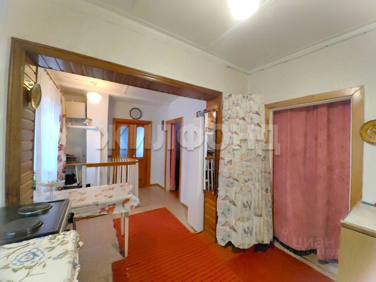 Участок огорожен, на участке баня, три теплицы, туалет, большая пристройка, двор закрыт навесом, все посадки. Достаточно дополнительных мест для летней кухни, кладовых, гаража. Дом рубленый, фундамент ленточный, окна пластиковые, техподполье выложено кирпичем, есть прогреб.