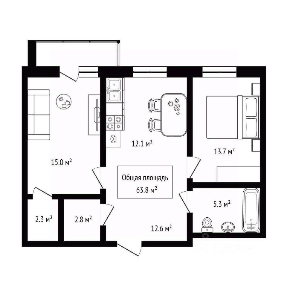 * Полностью укомплектована мебелью и встроенной техникой: