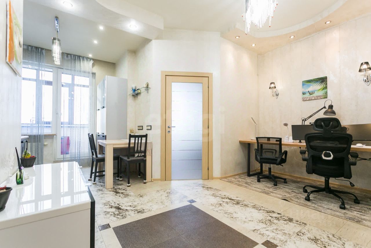 Планировка, которую редко встретишь в аренде: • высокие потолки 2,72 м — реально ощущается простор • 2 санузла: ванна + душевая (удобно для пары или семьи) • отдельная гардеробная комната • большая лоджия